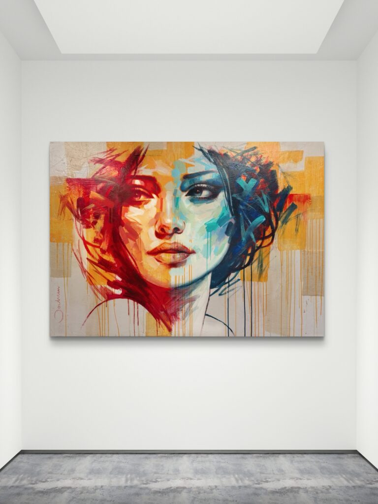 Origineel kunstwerk geschilderd op canvas. Techniek olie en aqryl op doek